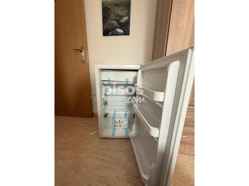 En cuanto a la habitación de 11 m2 con cama de 1,35, escritorio y armario, nevera con congelador de uso individual todo a estrenar y disponible para el inquilino, 2 juegos de ropa de cama, toallas, etc.