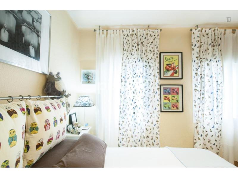 - Descripción de la propiedad en Uniplaces: Si está pensando en estudiar en Madrid y está buscando un lugar para quedarse, asegúrese de visitar este modesto apartamento cerca del centro de la ciudad. Estarás justo al lado de la hermosa y refrescante Quinta De La Fuente del Berro, a poca distancia del Hospital General Universitario Gregorio Marañón. En los alrededores, también encontrará varios restaurantes, tiendas y cafeterías. La propiedad tiene tres dormitorios, una cocina y un baño. La habitación disponible es muy luminosa y cómoda, con baño privado. La cocina está totalmente equipada con todos los electrodomésticos que necesitará para cocinar sus platos favoritos! Tenga en cuenta que la casera vive en la propiedad.Se incluye limpieza de habitación una vez por semana.