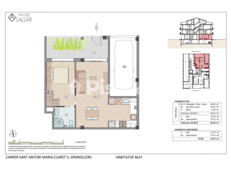 Piso de obra nueva y a estrenar en alquiler en la zona de Sant Miquel–Tres Torres (Granollers). Con 70,5 m², dispone de una amplia habitación doble en suite, baño completo, cocina americana integrada en un luminoso salón-comedor y terraza privada. La vivienda ofrece acabados de alta calidad, suelos de parquet y gres, y sistema de aerotermia para aire acondicionado y calefacción. Lavadero comunitario en el garaje y plaza de parking incluida. Ubicado en un entorno tranquilo y con historia, cerca de la Estació de França y rodeado de servicios, este piso proporciona comodidad y calidad de vida. No se aceptan animales, ocupación máxima de 2 personas y es imprescindible contrato de trabajo fijo e ingresos mínimos demostrables.