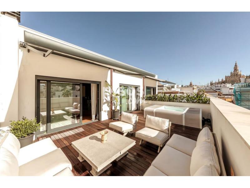 Con capacidad para 6 personas, te ofrecemos un entorno de comodidad y lujo inigualable.Con tres elegantes dormitorios, meticulosamente diseñados para brindar un ambiente de lujo y estilo.Disfruta de momentos inolvidables en nuestra espaciosa terraza de 39 m², donde puedes relajarte con una copa de vino al atardecer o disfrutar del sol sevillano mientras contemplas las vistas a la Catedral.