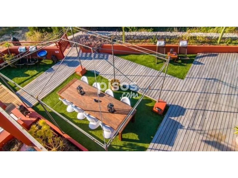 La vivienda cuenta además con una gran terraza en la cubierta, completamente cubierta de césped, equipada con sofá chill out y tumbonas.