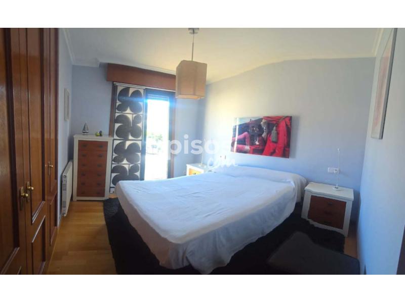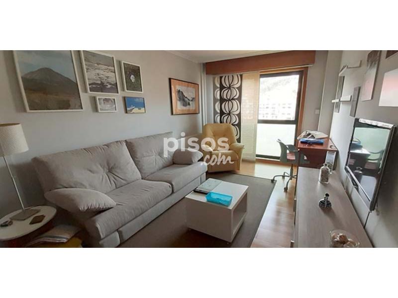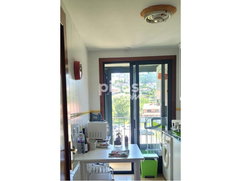 Piso de dos habitaciones, dos baños, cocina con balcón y lavadero, pasillo y sala. Vivienda exterior soleada todo el día. Calefacción de gas natural, suelo de tarima flotante excepto baños y cocina. Ascensor y plaza de garaje (para coche grande). Amueblado y con todos los enseres necesarios para vivir. Sólo a profesores/as. Parada de bus a Vigo a 100 m. Ambulatorio a 100 m. Supermercados a 100 m. Playa a 200 m. Preinstalación de wifi con Movistar y “R”.