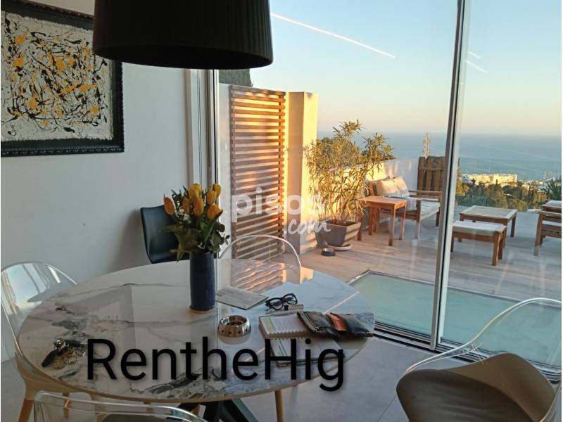 La vivienda destaca por sus espectaculares vistas panorámicas y su diseño moderno y funcional. Dispone de un amplio salón con cocina abierta, que conecta directamente con una terraza panorámica completamente amueblada, ideal para disfrutar del clima de la Costa del Sol durante todo el año.