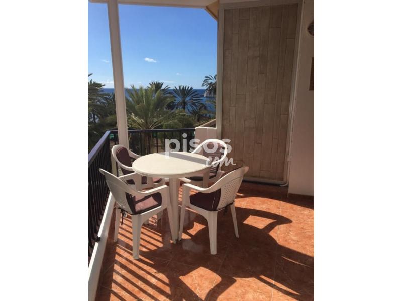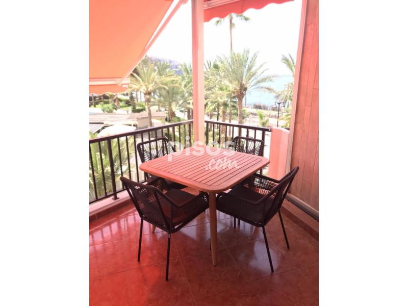 Estudio en primera lÃnea de mar, Avda. marÃtima de Los Cristianos con 38 m2. de vivienda y 13 m2. de terraza. Distribuido en zona dormitorio con dos camas y armario empotrado, baño con plato de ducha y armario empotrado donde está la lavadora y el calentador, cocina americana equipada, salón comedor con sofá cama y terraza con vista al mar con un cuarto trastero.