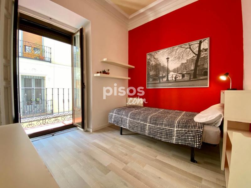 This room of about 11 sqm is exterior, very bright and has one big balcony and window overlooking Meson de Paredes St.