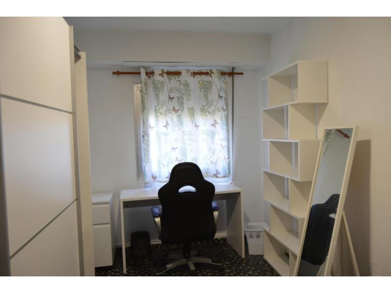 Cama de 105 cm, armario, escritorio, ventilador de piso, estufa calefactor y baño compartido con una persona