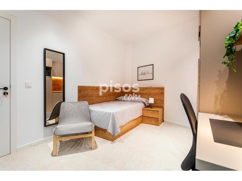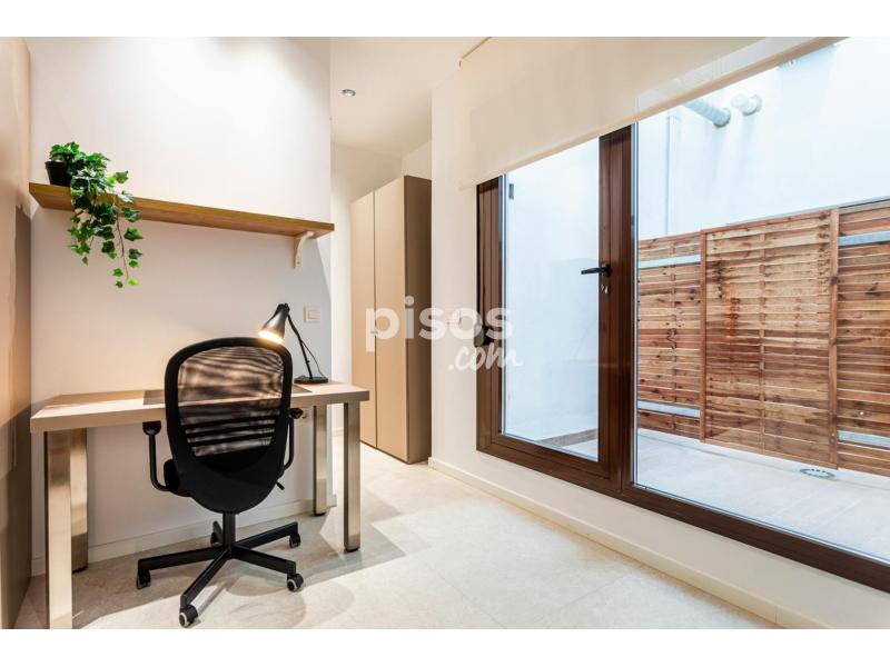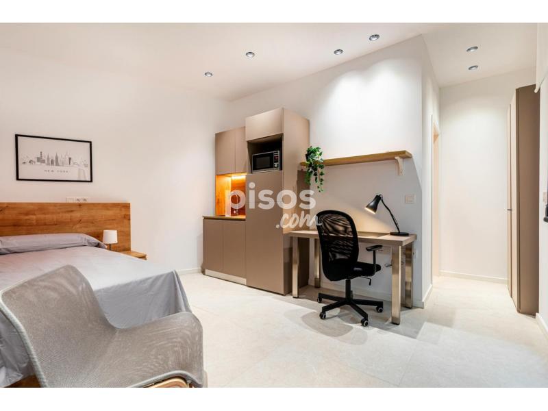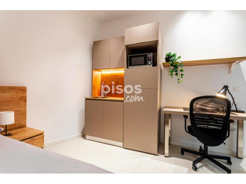 The single studio has a kitchenette (without a cooker), a private bathroom, an interior terrace with furniture, a 105x200cm bed, a wardrobe, a desk, and hot-cold air conditioning. You can prepare your meal in the common area kitchen or your private microwave.
