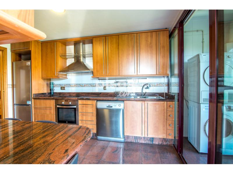 Cocina equipada con nevera, refrigerador, lavavajillas, lavadora, microondas, horno, vitro cerámica, todos los utensilios de cocina necesarios, etc.