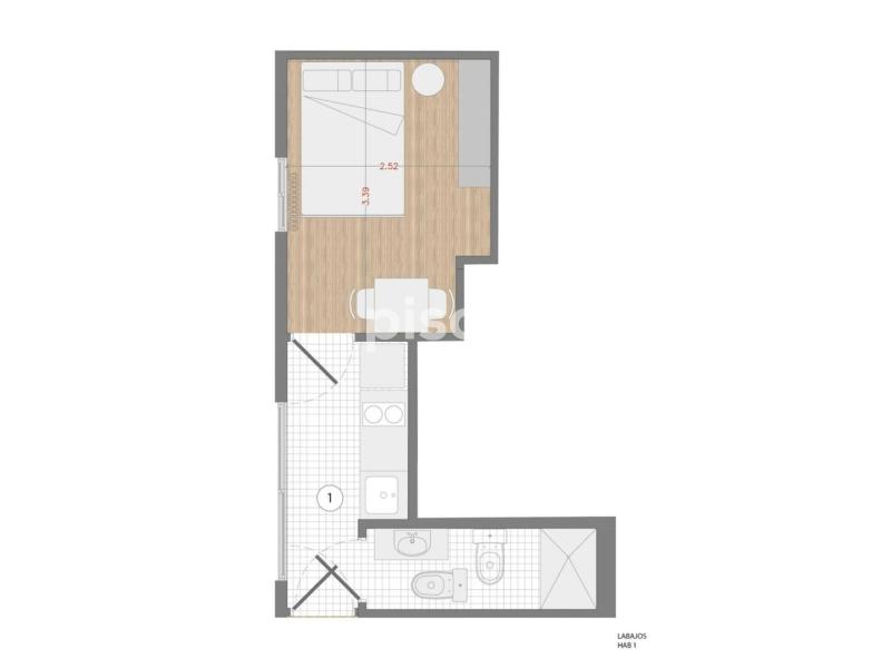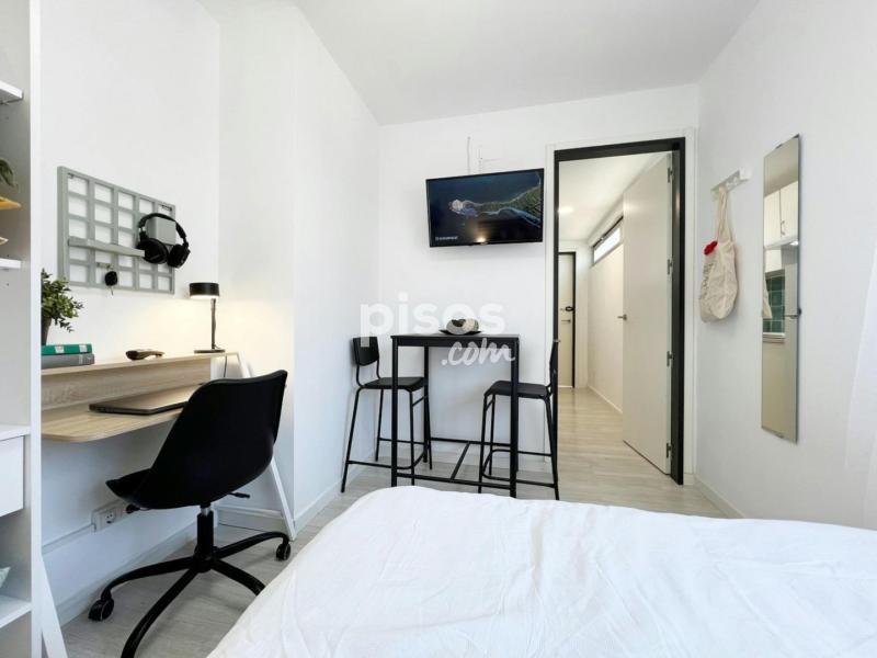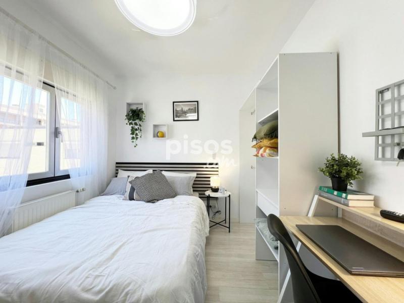 Piso con estudio independiente en la primera habitación, además, cuenta con cuatro habitaciones que comparten un baño y cocina. El piso está ubicado en la segunda planta (sin ascensor). La cocina está equipada con todos los electrodomésticos, utensilios y menaje necesarios. El baño cuenta con espacio de almacenaje para tus enseres personales.