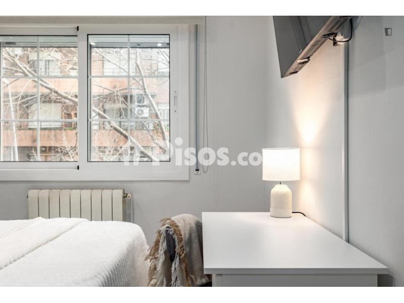 - Descripción de la propiedad en Uniplaces: SUPER BRIGHT NEWLY RENOVATED - Located on Travessera de Les Corts. Includes all utilities water, electricity, gas, WiFi and weekly cleaning. Fully furnished double room: KING SIZE bed with lift-up mattress, Smart TV, desk, closet, bedding, and towels. Two shared bathrooms. Fully equipped kitchen with appliances, kitchenware, and washer-dryer. Shared living room with AC. Couples not allowed. LOCATION: Les Corts, a central Barcelona district blending residential charm, business hubs, and sports culture. Near Camp Nou, Avenida Diagonal, LIlla Diagonal. Metro L5 L9S is 5 minutes away. Note: There is a 50 EUR Check-out cleaning fee.