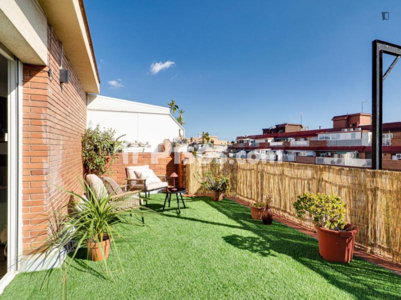 - Descripción de la propiedad en Uniplaces: Please read the description before contacting. SHARED TERRACE SUPER BRIGHT NEWLY RENOVATED ALL NEW FURNITURE Located in Horta Guinardó INCLUDED: All utilities water, electricity, gas, WIFI and weekly cleaning, including cleaning products. Fully furnished double room: KING SIZE bed with lift-up mattress, Smart TV, desk, hangers, sofa, ceiling fan, coffee machine, and mini fridge. Bedding: pillows, cushions, comforter, sheets, laundry basket, and towels. Two full shared bathrooms. Fully equipped kitchen with appliances microwave, coffee machine, toaster. Kitchenware, and shared living room. Dedicated laundry area with washer-dryer. LOCATION: A short walk to Parc de Collserola for nature escapes and trails. Nearby Valldaura metro station Green Line for quick access to Barcelona. Note: There is a 50 EUR Check-out cleaning fee.
