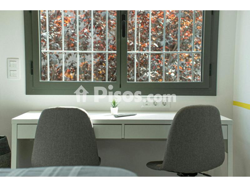 The room is furnished with a desk and a comfortable office chair for you to work comfortably. You can also add an additional chair if you prefer. Thanks to its large window, the room is very bright, and the wardrobe with mirrored doors, along with the bookshelf, will provide you with all the space you need for your belongings.