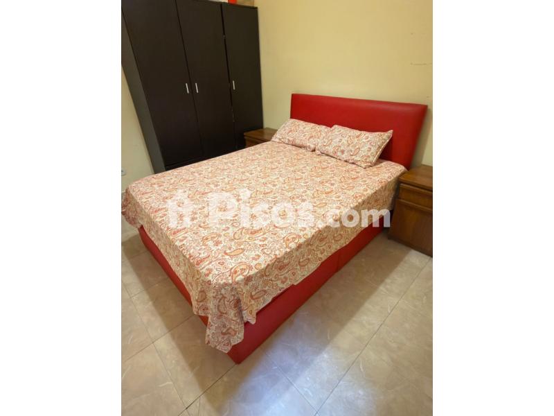 Es una habitación muy amplia con ventana al exterior con 2 baños uno para las visitas y otro con ducha. Es buen lugar muy buena zona. Es una habitación muy amplia con personas buenas. Alquilaras con unas casa de familia.