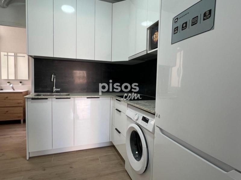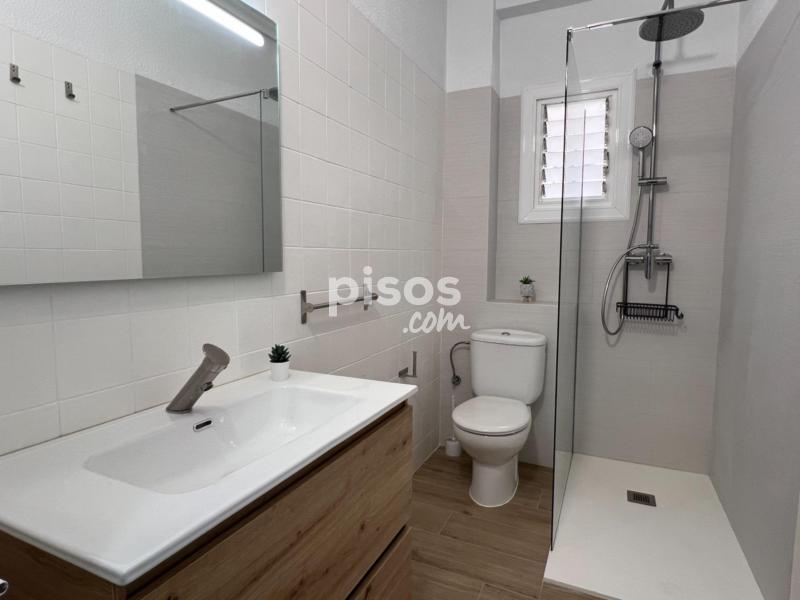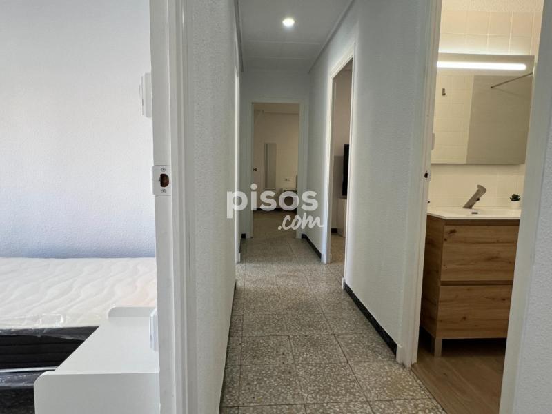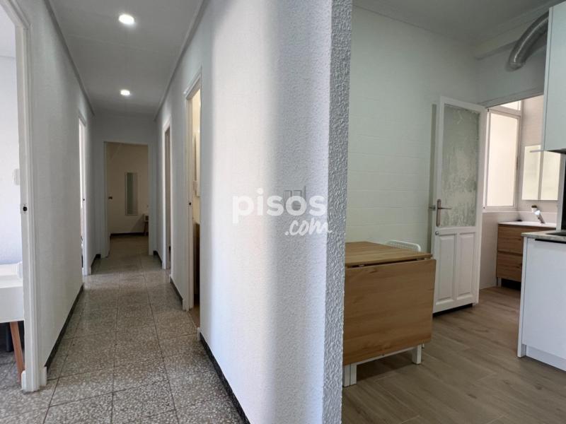 El piso está en muy buen estado y cuenta con un baño equipado con ducha y un aseo, cuatro habitaciones y una sala de estar o descanso con sofás y TV. La cocina es muy amplia y tiene un frigorífico y lavadora y utensilios básicos.