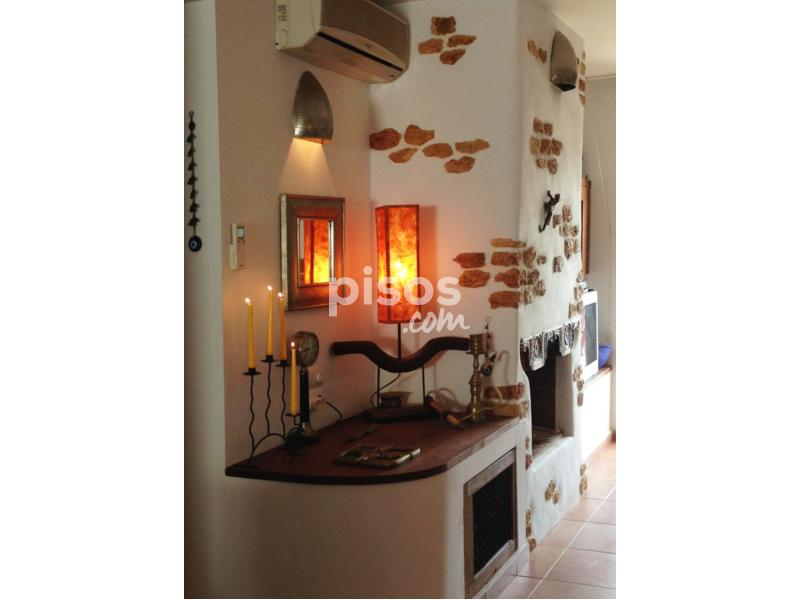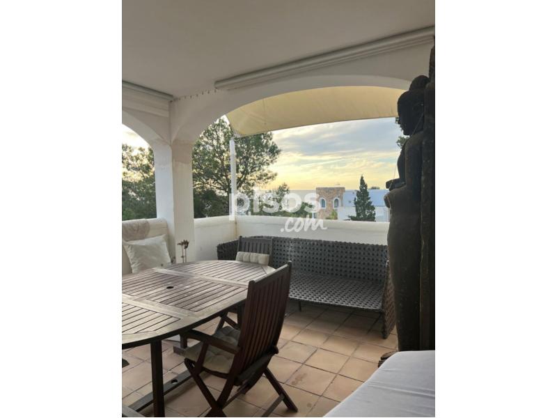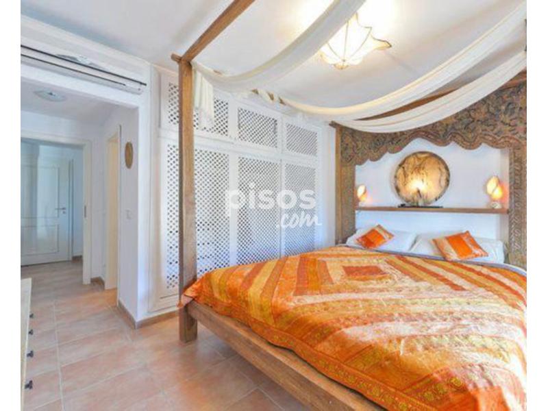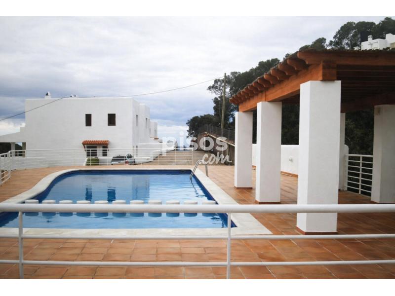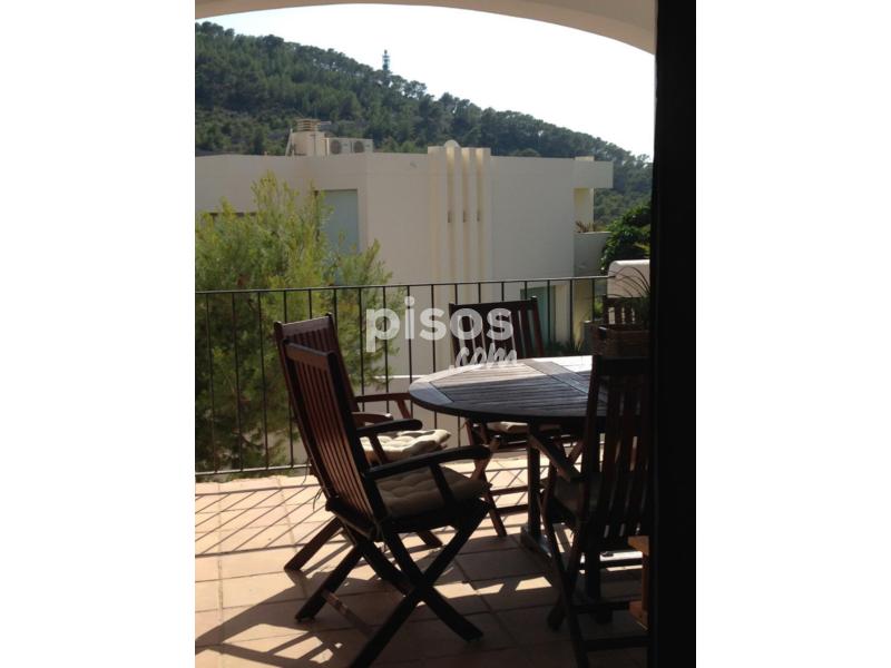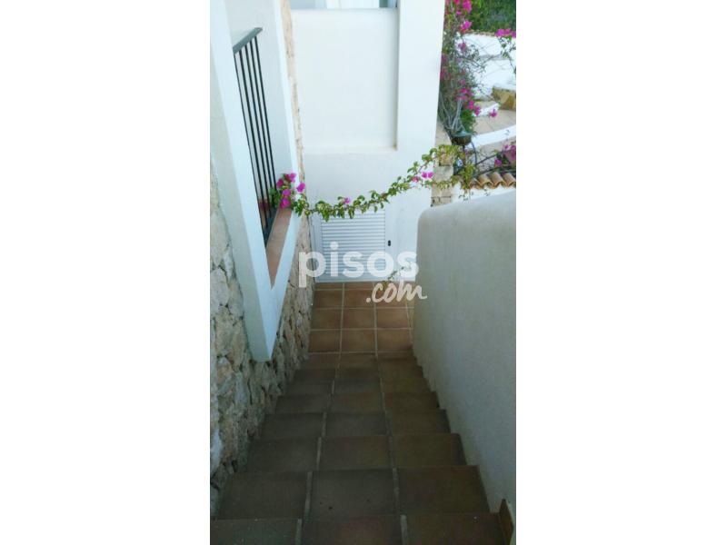 ALQUILER DE TEMPORADA EN CALA VADELLA. Se alquila casa adosada, 110 m2 construidos, parcela de 400 m2, 2 habitaciones, 2 baños (1 en suite), amplio salón comedor con salida a terraza con bonitas vistas al mar y a las puestas de sol, chimenea, cocina americana equipada, aire acondicionado frío-calor, jardín, piscina comunitaria, trastero y plaza de parking, solarium en planta superior con espectaculares vistas, situado en un complejo residencial exclusivo y cerrado con acceso restringido, a 5 minutos del pueblo de Sant Josep. Máximo 6 personas. Precio alquiler de temporada: 2.500 euros/mes.