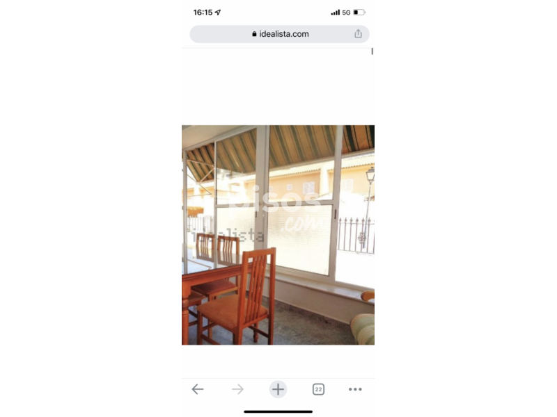 Casa adosada en planta baja. Consta de 3 habitaciones, un baño completo, cocina equipada. Plaza de aparcamiento en la parcela, porche exterior acristalado, salón comedor, cocina grande equipada. Patio trasero con lavadero. A 4 minutos de la playa, junto al colegio las gaviotas.