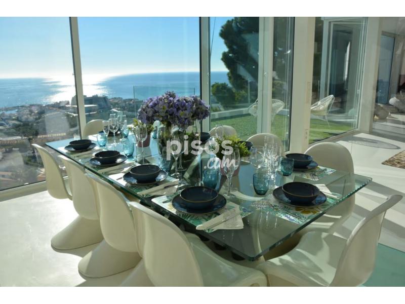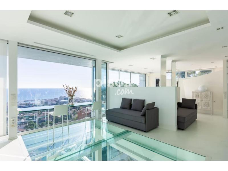 La propiedad de 4 plantas, moderna y luminosa, consta de una sala de estar, una cocina bien equipada con lavavajillas, 4 dormitorios, 2 de cama king size ( 181cm -210 cm) y 2 de dos camas individuales (90cm - 130cm) y 4 baños, así como un aseo adicional, por lo que puede alojar a 11 personas. Los servicios adicionales incluyen Wi-Fi de alta velocidad, aire acondicionado y una televisión. La villa cuenta con una zona privada de terraza al aire libre con una piscina, un jacuzzi, un jardín, un balcón y una barbacoa. El lugar perfecto para reunir a toda la familia y pasar los días descansando junto a la piscina y las cálidas noches de verano cenando al aire libre con impresionantes vistas al mar.