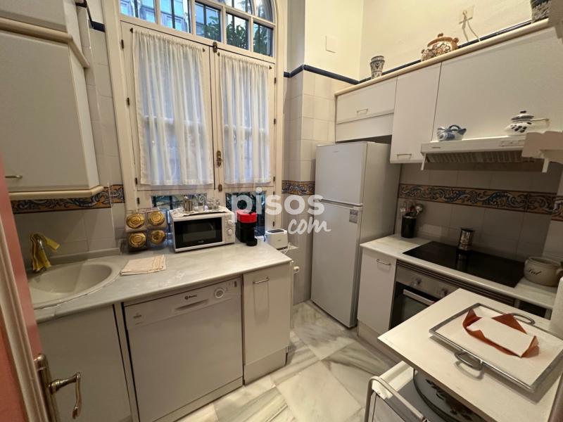 ALQUILER POR TEMPORADAS CORTAS. RESERVADO ( 24-31 de Marzo y 14-20 de Abril) Magnífico Piso de SUPERLUJO ubicado en Casa Palacio Sevillana a escasos metros de la Giralda y la Catedral (calle Placentines). Centro Histórico, a escasos metros de la CATEDRAL, rodeado de todo tipo de comercio, restaurantes, Iglesias, monumentos. Fantástico piso de alto standing ubicado en casa palacio de Aníbal González. Privilegio, tranquilidad y lujo. Se alquila con todo tipo de comodidades, menaje, sabanas, toallas, Wi-Fi, incluido en el precio los gastos, tanto de comunidad como de consumo de suministros. No se admiten mascotas. SEMANA SANTA Y FERIA RESERVADO. Se distribuye en amplio vestíbulo, pasillo que accede a cocina independiente completamente equipada, con menaje y amplio ventanal que deja pasar la luz natural y ventilación de las zonas comunes con mucha vegetación exquisitamente cuidado. Amplio salón-comedor con estancia agradable de sofá, techos altos y con una decoración muy selecta en cuadros, mobiliario y enseres además cuenta con una maravillosa vidriera. Dormitorio tipo suite con baño incorporado, armarios empotrados vestidos, incluye juego de sabanas, toallas. Climatización independiente frío/calor. En el precio incluye los gastos de suministros y comunidad. Para ampliar información y formalizar su reserva, póngase en contacto con la agencia, o si tiene alguna duda recuerda que puedes hablar con nuestro agente de TyB CONSULTORES INMOBILIARIOS en el Teléfono +34 616585699. Honorarios de intermediación inmobiliaria no incluidos. Tenemos a su disposición nuestro porfolio de viviendas con similares características que se adapten a sus necesidades.