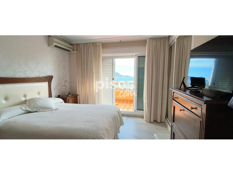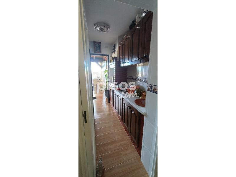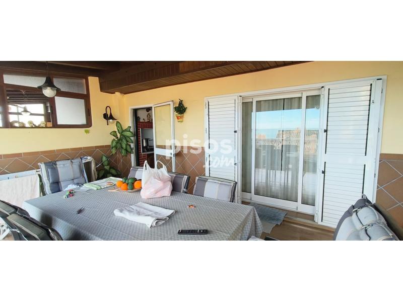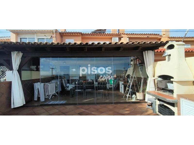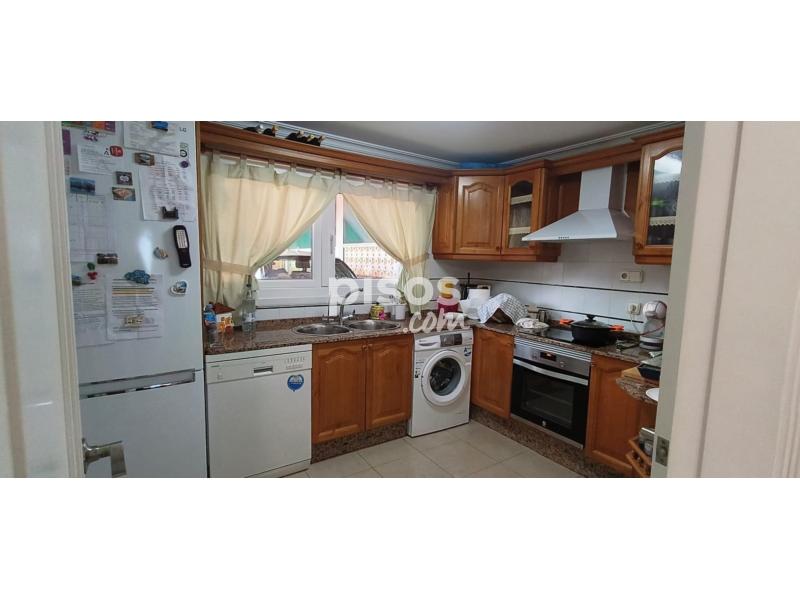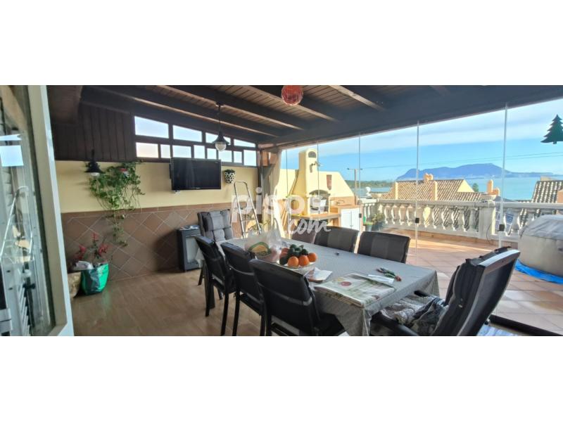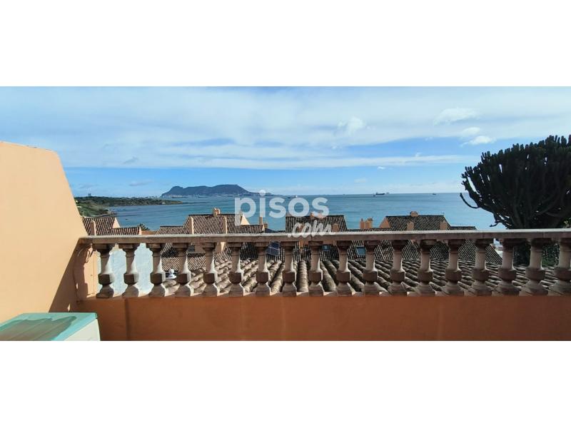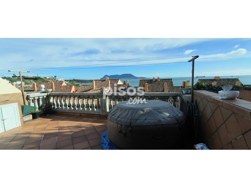 Se alquila fantástica vivienda unifamiliar adosada en urbanización privada, con acceso restringido, en primera línea de playa, más concretamente, en la conocida playa de Getares de la ciudad de Algeciras. La vivienda, con más de 150 m2 construidos de superficie distribuidos en dos plantas, dispone de una terraza delantera cubierta, parcialmente, por paneles sándwich, con capacidad para el estacionamiento de dos vehículos, y un pequeño porche abierto, así como de una terraza trasera de dimensiones similares, con un increíble porche cerrado por cristaleras, y espectaculares vistas a la bahía de Algeciras. En la planta inferior, la vivienda dispone de una cocina principal, completamente equipada, con una despensa, y de una cocina auxiliar, contigua a la terraza trasera, así como de un salón grande, con muebles de escayola, y de una sala de estar, además de un baño completo. En la planta superior, la vivienda dispone de un baño completo grande y de tres amplias habitaciones con armarios empotrados, así como de un amplio balcón con acceso desde dos de las habitaciones y unas alucinantes vistas de la bahía de Algeciras. La vivienda se entrega parcialmente amueblada, pero con un nuevo sistema de placas solares térmicas para el suministro de agua caliente y un nuevo descalcificador, así como con un sistema de aire acondicionado en el salón y la habitación principal, como equipamiento complementario, además de con una barbacoa de obra en la terraza trasera. El precio y el resto de condiciones se detallan por teléfono (654 254 788).
