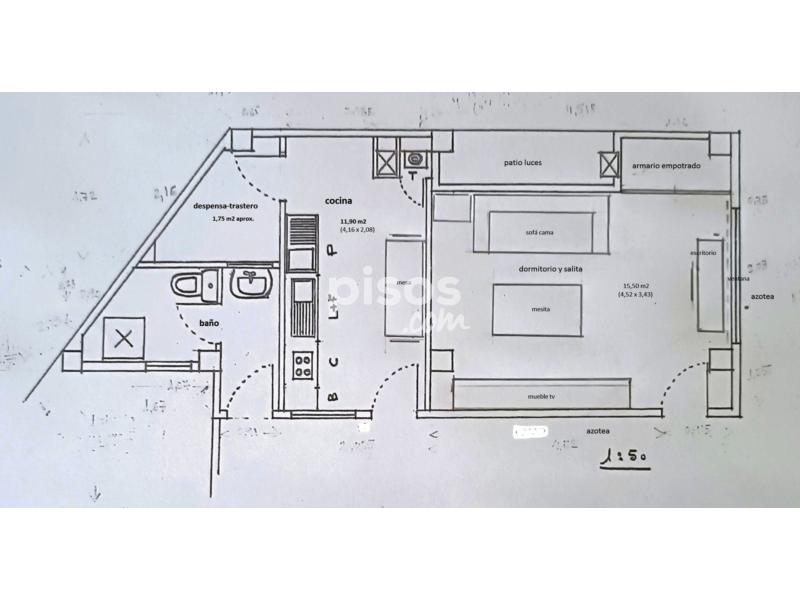 ARUCAS: PEQUEÑO APARTAMENTO-ESTUDIO, AMUEBLADO. EN ÁZOTEA Se ruega leer bien el anuncio y ver todas las fotos, plano y vídeo antes de llamar, y abstenerse intermediarios. Para una sola persona. Permanencia obligatoria mínima: dos años (contrato de temporada). En edificio de primer orden con 6 viviendas ésta incluida, en el casco (real) de Arucas, a 6 minutos de Las Palmas, en calle de oficinas municipales, Inem, ambulatorios, juzgados, etc. ; parque infantil y gimnasio enfrente. No es un piso o vivienda al uso, sino un pequeño apartamento-estudio en azotea (altura 3 pisos sin ascensor en uso), de unos 35 m2, compuesto de una única amplia habitación (de 15 m2) para servir de dormitorio y sala de estar (con ropero empotrado, sofá-cama de matrimonio, mueble tv, mesita estar, mesita-escritorio y sillas); cocina (con placa de gas butano, termo eléctrico, nevera, microondas, lavadora y mesita con dos sillas); dicha cocina tiene una despensa y/o trastero al fondo, con estanterías; baño (2 zonas); barbacoa; y pequeño espacio de azotea. Estos elementos están unidos entre sí, formando un conjunto, pero se accede a cada uno de ellos por el exterior o azotea, a través de sus propias puertas exteriores (ver plano). Dispone de antena de tv e instalación para fibra óptica. El acceso general lo es a través de la caja de escaleras y azotea del edificio. No garaje pero los hay a buen precio en la zona. Por sus características, se alquila para ser ocupado por una sola persona. Mascotas: negociable. Luz, agua e impuesto (IBI) no están incluidos en el precio, pero sí la comunidad y seguro básico. Precio no negociable salvo pago anticipado de una anualidad (4% descuento). Se debe acreditar solvencia cívica y económica (25000 € anuales), o aval o fiador. Solo se atienden llamadas telefónicas (abstenerse de otro medio) y de 18,00 a 21,00. Sr. Rodríguez, tfno. 639 24 27 24