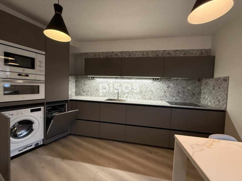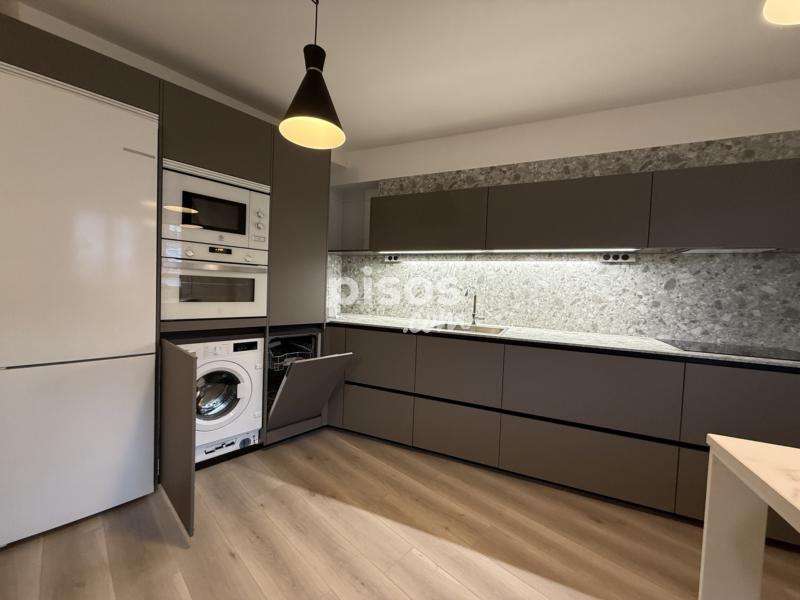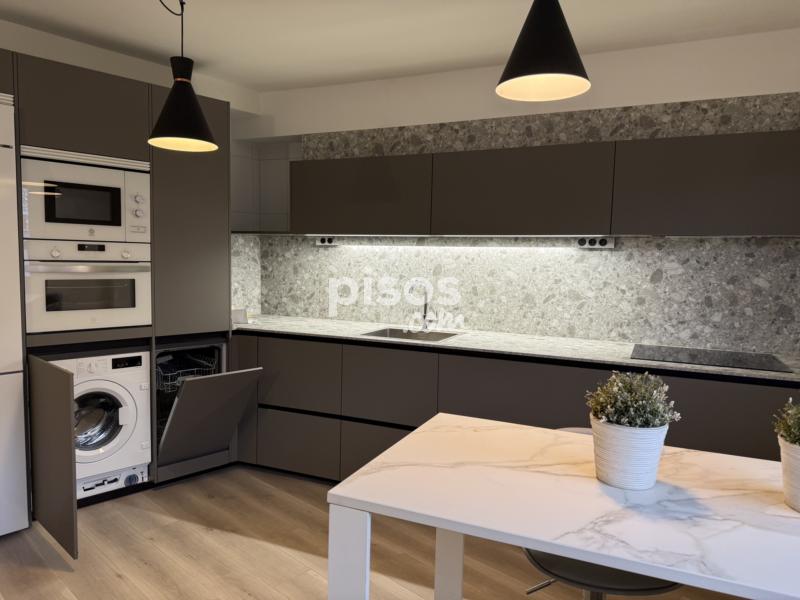 La vivienda cuenta con un salón amplio con cocina abierta, totalmente equipada y amueblada. Dispone de horno, microondas, lavadora, lavavajillas, placa de inducción y campana extractora, además de extras de almacenamiento como cajones extraíbles, que aportan comodidad y funcionalidad al espacio.