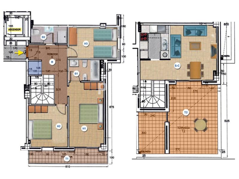 - Planta superior (Zona de día): Un luminoso espacio diáfano de salón-comedor integrado con una cocina moderna y totalmente equipada. Desde aquí se accede directamente a la joya de la corona: una terraza de 21 m² con vistas privilegiadas, equipada con una gran pérgola y cortinas laterales abatibles que permiten cerrarla y disfrutarla en cualquier época del año.