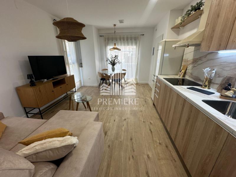 La zona de estar se integra con una práctica cocina americana, moderna y totalmente equipada, que aporta amplitud y comodidad al conjunto de la vivienda.