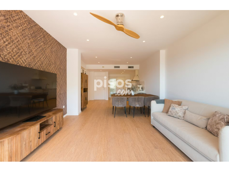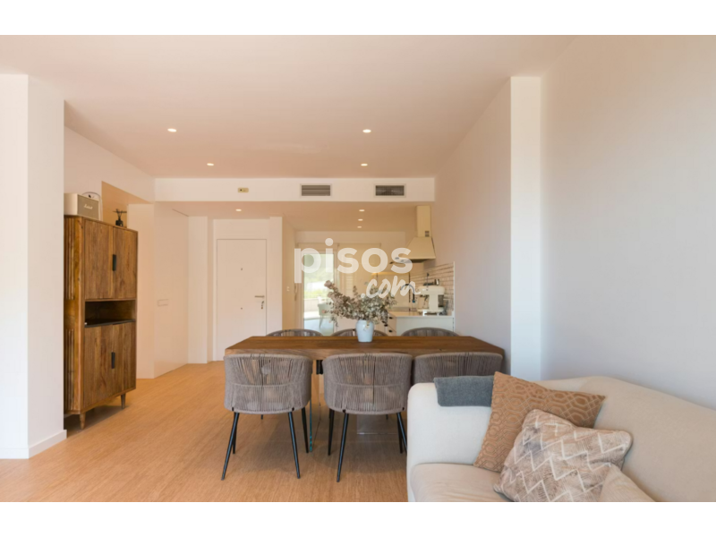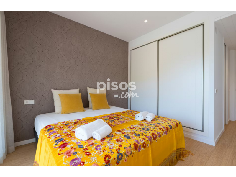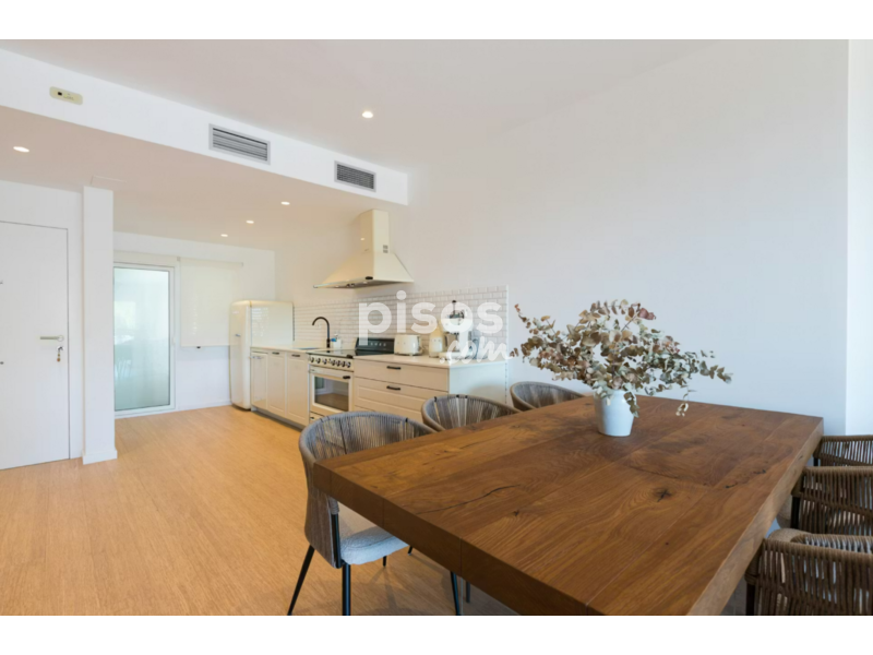 El piso cuenta con dos dormitorios dobles, dos baños completos (uno de ellos en suite), una luminosa zona de salón-comedor de concepto abierto y una cocina totalmente equipada. Su punto culminante es una amplia terraza privada con vistas abiertas, perfecta para comidas al aire libre, tardes de relax o teletrabajo. El edificio también ofrece acceso a una piscina comunitaria.