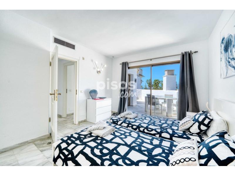 Ubicación de ensueño en Golden Beach Elviria. Impresionantes vistas panorámicas de 360° al mar y a la montaña. Una oportunidad única para adquirir un espacioso ático en un exclusivo complejo en primera lÃnea de Golden Beach. Esta excepcional propiedad, que se extiende a lo largo de tres plantas, aloja cómodamente a una familia de hasta 12 personas.• 5 amplias habitaciones, 4 baños• Cocina totalmente equipada con electrodomésticos modernos• Elegante comedor y múltiples espacios para comer al aire libre• Amplias terrazas en la azotea con barbacoas y jacuzzis (calefactables bajo petición)• Terraza en la azotea con impresionantes vistas al mar, la piscina y la montaña. Aspectos destacados de la propiedad:• 5 habitaciones, 4 baños• Cocina y sala de estar de planta abierta con un sofisticado diseño interior• Amplia terraza de tres plantas con múltiples espacios para comer• Internet de fibra óptica de alta velocidad• Ubicación privilegiada frente a la playaUbicación inmejorable:• A solo 80 metros de la famosa Golden Beach (entre El Rosario y Elviria)• A 150 metros del Estrella del Mar Beach Club (spa de 5 estrellas, gimnasio, sauna, piscinas climatizadas interiores y exteriores)• Restaurantes de primer nivel a poca distancia:La Planche (cocina belga-francesa, 100 m)La Scala (auténtica italiana, 150 m)• Enclavado en un galardonado jardÃn tropical con tranquilas zonas de estar, fuentes, arroyos, y dos grandes piscinas (+2 piscinas infantiles)• Parque infantil a solo 40 metros. Servicios convenientes a poca distancia:• Restaurantes y cafeterÃas frente a la playa• Supermercados, farmacia, carnicerÃa, peluquerÃa• Parada de autobús, clubes de golf y tenis cercanos• A solo 8 km de Marbella y 12 km de Puerto Banús• ¡Ideal para inversión en alquiler a corto o largo plazo!Vida de lujo en un complejo frente a la playaDistribución interior:• Primera planta (recientemente renovada): 2 dormitorios (uno con baño privado), 2 baños nuevosSala de estar, comedor y cocina de planta abiertaGran terraza con comedor al aire libre y barbacoaSmart TV e internet de fibra óptica de alta velocidad• Segunda planta: 2 dormitorios adicionales con baño privadoUn baño privado cuenta con una lujosa bañera redondaTerraza privada para una relajación serena con increÃbles vistas a la piscina del jardÃn y al mar• Tercera planta (terraza en la azotea):Impresionantes vistas panorámicas de 360° al mar y la montañaDormitorio privadoAmplia sala de estar al aire libre, tumbonas y jacuzziEl refugio definitivo para la relajaciónCaracterÃsticas adicionales:• Subterráneo Estacionamiento disponible bajo petición • ¡No necesita coche! Todo está a poca distancia a pie • Dos grandes supermercados a solo 900 m • Cerca: cafeterÃas, bares, restaurantes, carnicerÃa, peluquerÃa, farmacia y más. Servicios del complejo Golden Beach: • Jardines tropicales galardonados con zonas de descanso • Dos piscinas grandes y dos piscinas infantiles •
