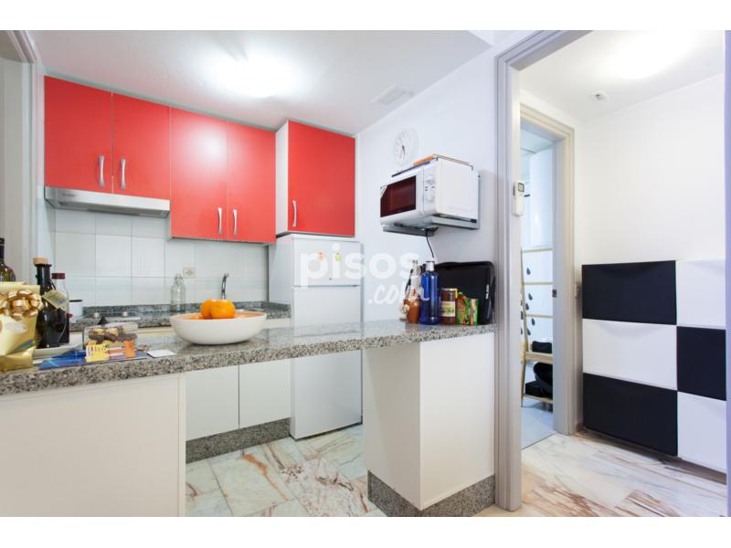 Este apartamento dispone de un buen salón comedor con cocina dominado por un gran ventanal que le confiere mucha luz. Este salón exterior tiene un sofá cama, mesa de centro, mueble de TV con TV plano de 32" y mesa de comedor para 4 comensales junto al ventanal. La cocina tiene una lavadora, Frigorífico con congelador independiente, vitrocerámica, microondas y campana extractora. El dormitorio también es exterior y está dotado con cama de matrimonio de calidad y armario empotrado. El baño dispone de placa de ducha, inodoro y lavabo. El sistema de agua caliente es por acumulador eléctrico. Sistema de aire acondicionado frio/calor centralizado con salidas de aire en salón y dormitorio. Los suministros de agua y luz son individualizados y el consumo no está incluido en la renta.